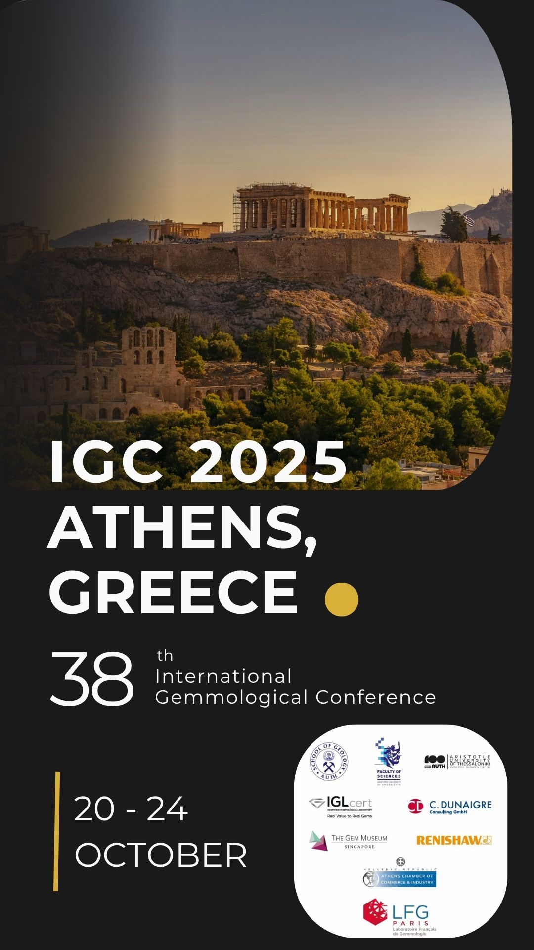 Τη συνδιοργάνωση του συνεδρίου στην Ελλάδα ανέλαβαν ο γεμολόγος και εκτιμητής Σπυρομήλιος Γεώργιος CDG, IMJVA, NAJA, ιδρυτής του ανεξάρτητου εργαστηρίου IGLcert (Independent Gemological Laboratory) και ο επίκουρος καθηγητής γεμολογίας και ορυκτολογίας του ΑΠΘ και υπεύθυνος εργαστηρίου Laboratoire Francais de Gemmologie (LFG, Παρίσι, Γαλλία) Δρ. Καράμπελας Στέφανος.