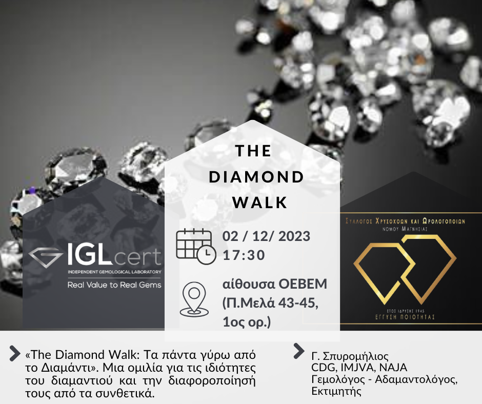 Ο κ. Γιώργος Σπυρομήλιος CDG, IMJVA παρουσίασε το «The Diamond Walk: Τα πάντα γύρω από το Διαμάντι» για τον Σύλλογο Χρυσοχόων & Ωρολογοποιών Ν.Μαγνησίας, μια ομιλία για τις ιδιότητες του διαμαντιού και την διαφοροποίησή τους από τα συνθετικά.