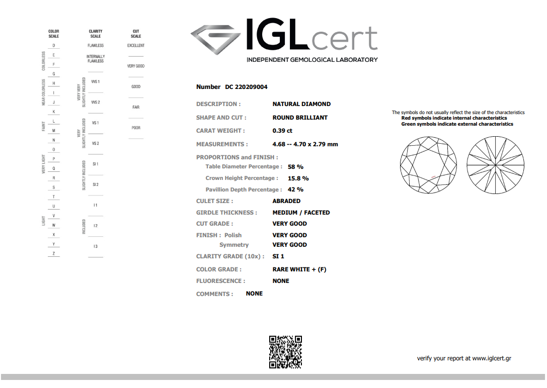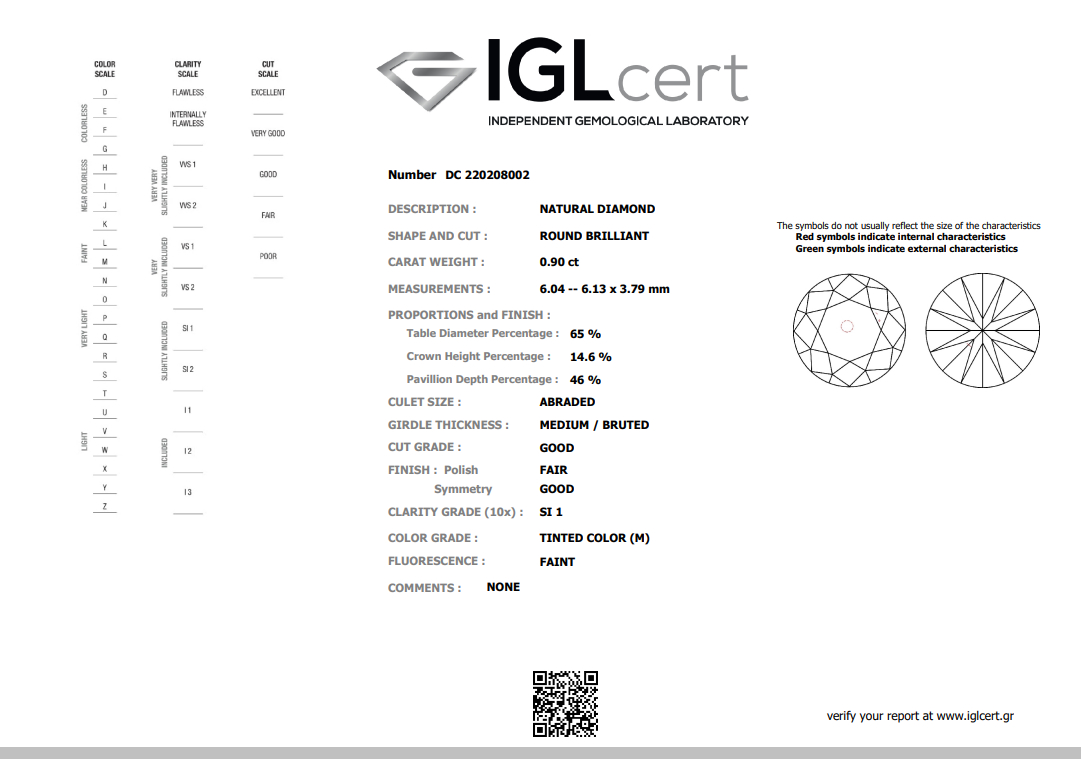 Το Diamond Identification Report είναι η γεμολογική αναφορά που αποτυπώνει την ποιότητα κοπής, χρώματος, καθαρότητας και βάρους του διαμαντιού, καθώς και την προέλευση του ( συνθετικό ή ορυκτό ). Επιπλέον, εξετάζεται η ενδεχόμενη παρουσία οποιασδήποτε επεξεργασίας, όπως χρωματισμός/αποχρωματισμός, τρυπήματα με laser ή προσθήκες με γυαλί, και αναφέρεται λεπτομερώς το κάθε είδος επεξεργασίας.