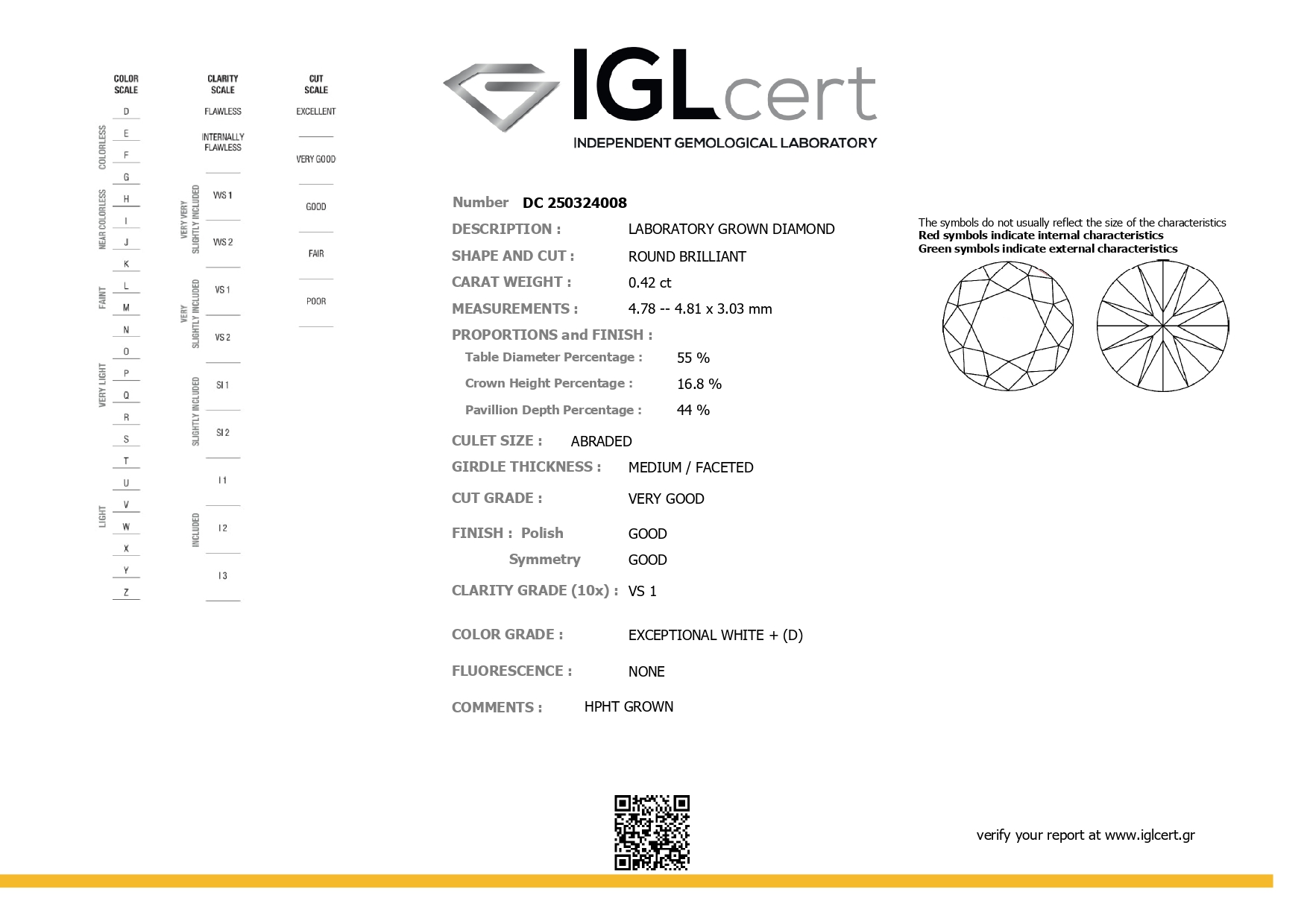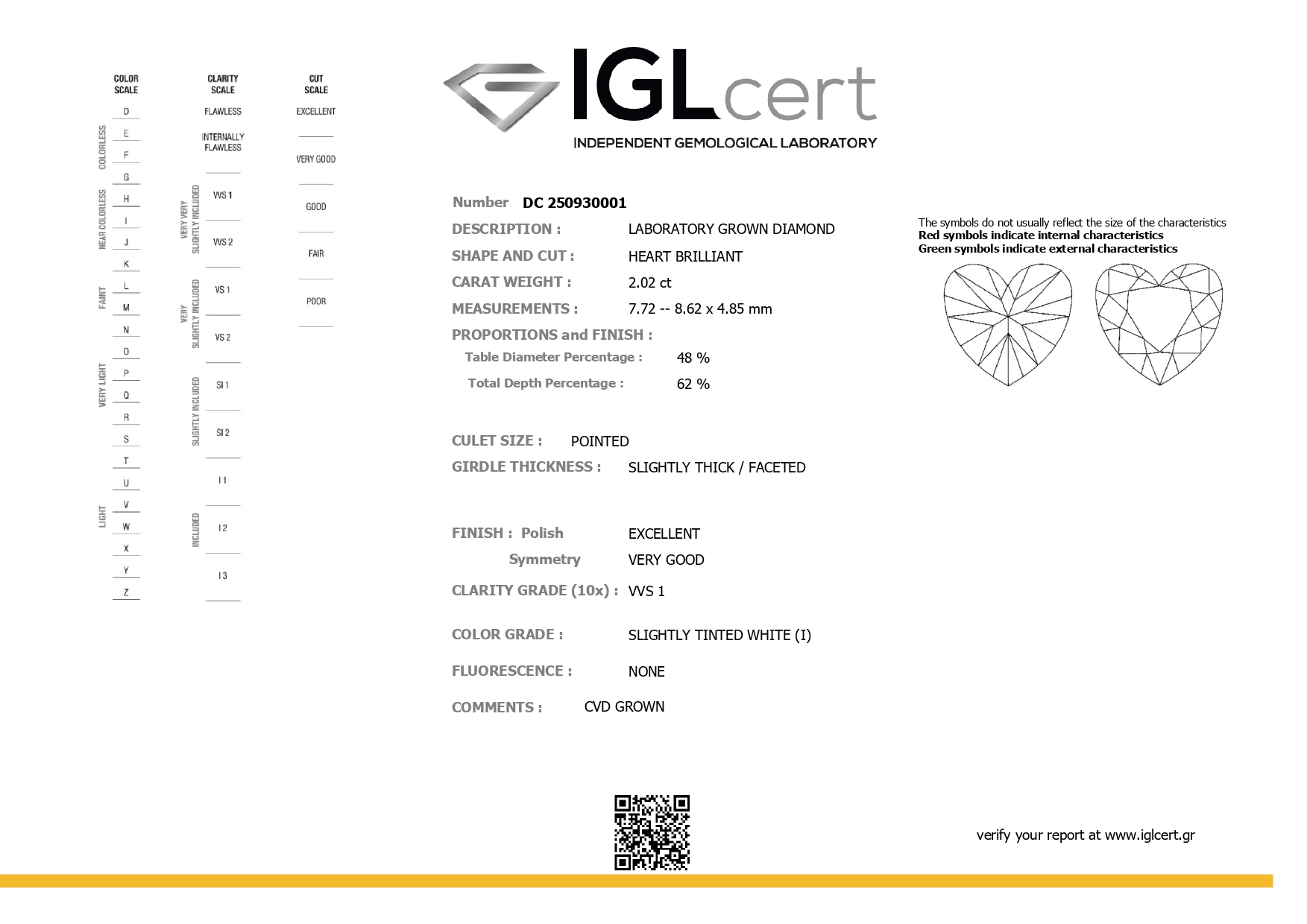 Το Laboratory Grown Diamond Report αφορά αποκλειστικά συνθετικά διαμάντια και σηματοδοτείται από το κίτρινο ή πορτοκαλί χρώμα των πιστοποιητικών σύμφωνα με τους διεθνείς κανονισμούς. Τα συνθετικά διαμάντια δημιουργούνται σε εργαστήριο και αναφέρονται ως “Laboratory Grown Diamonds”.